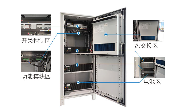采用集成式机柜安装,集成热交换温控系统,设备和电池都安装在机柜中,设备工作环境恒定,提升稳定性;提升抗盐雾防护等级,延长设备寿命。