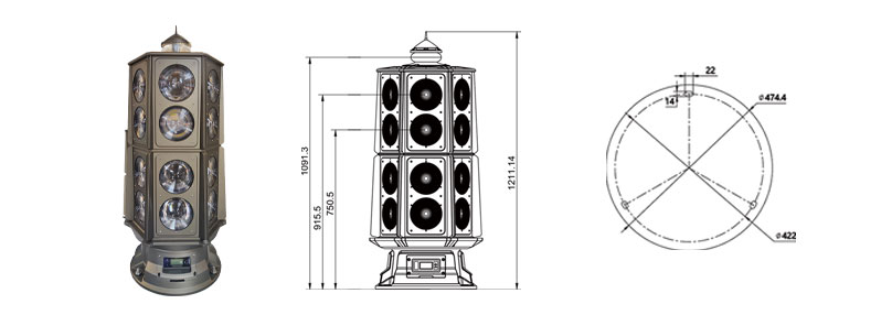 超远射程:6面高光效LED光源,最大作用距离超过24海里,射程可调,完美适配一、二级灯塔需求。