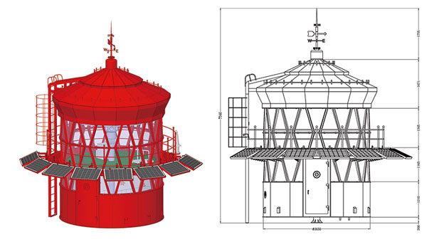 钢结构部分采用多级结构联接成圆柱形主体,也可根据用户需求进行设计、计算。根据安装现场、运输情况,可以整体交货,也可工厂预制,现场组装(组焊)灯笼底法兰与维修平台采用螺栓连接。灯笼具有强度高,耐腐蚀,稳定性好,安装方便,维护简单的特点,外观简洁大方,适用于各种工况、各种海域。