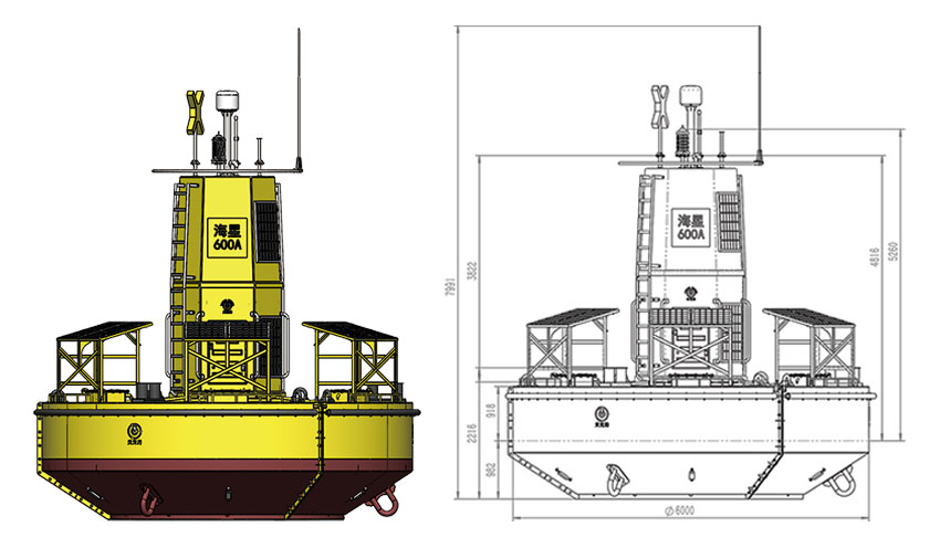 海星600A数据监测浮标由灯架部件和浮体部件组成。