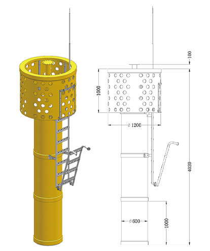 珊瑚系列滚塑灯桩是天元海公司自主研发的新型复合灯桩,由内部高强度钢骨架、外部滚塑筒体、维修平台、高显形护栏、外爬梯、避雷针等部分组成。结构坚固、可抗17级台风,并可承受海浪强烈拍击,广泛用于岛礁、岬角、港口、防波堤等各种恶劣环境。