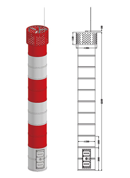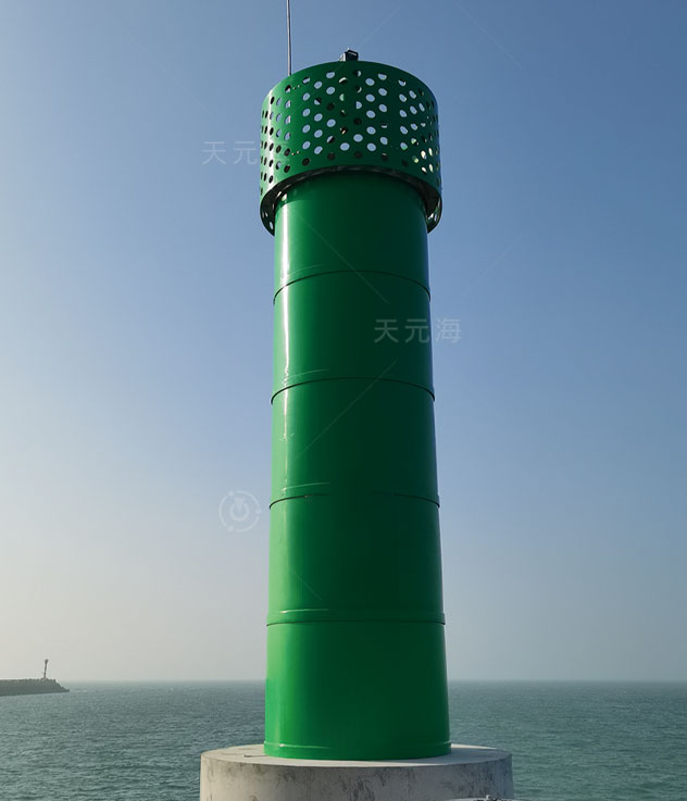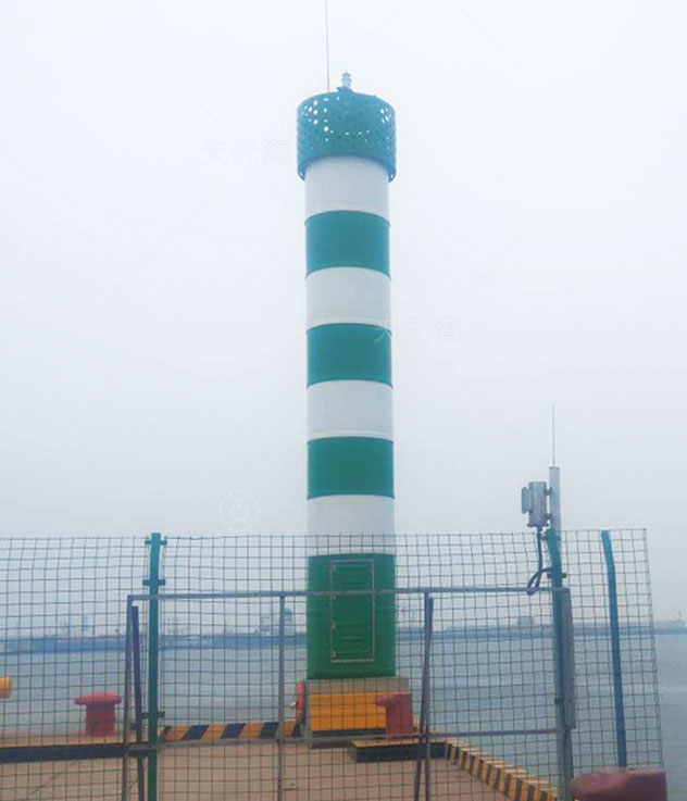 珊瑚系列滚塑灯桩是天元海公司自主研发的新型复合灯桩,由内部高强度钢骨架、外部滚塑筒体、维修平台、高显形护栏、爬梯、防盗门及避雷针等部分组成。结构坚固、可抗17级台风,并可承受海浪强烈拍击,广泛用于岛礁、岬角、港口、防波堤等各种恶劣环境。